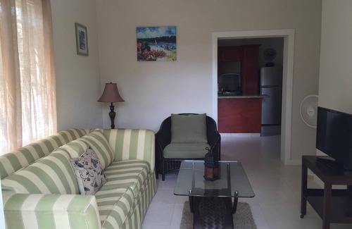 Recently renovated and fully self contained, the apartment has one-bedroom and one bathroom (ensuite). It is updated, spacious and outfitted with Insect screens and security grills on all windows, Granite counter tops, AC unit in the bedroom, Ceramic tiles throughout and built in closets and cupboards. The apartment has been tastefully designed, with modern and comfortable furniture, new appliances & lots of counter/closet space. A queen size pull out sofa bed in the living room can be prepared upon request, or a folding bed provided in the bedroom, for additional sleeping space. The kitchen is well equipped with both large and small appliances, crockery, cutlery, pots, pans and bake ware. The apartment has its own private entrance, and outdoor living spaces (patio) where alfresco dining can be enjoyed. The patio has insect screens (MOSQUITO MESH), ceiling fan, security bars and lockable gate. It is well maintained and is meticulously clean.