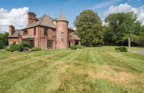 The castle is made of a main house and a separate carriage house. The main house has 5 bedrooms and 4.5 bathrooms, and is for rent. The carriage house is used by the owner.