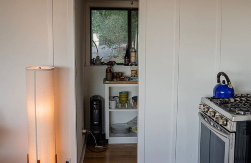 This unique bungalow is nestled at the top of a hill with deck views that showcase the San Francisco Bay and six counties. The bungalow features large windows in every room that let in ample sunlight and offer breathtaking views. It's within walking distance from beautiful downtown Mill Valley (30min walk or 7min drive) with restaurants, bars, and cafes. While only a stone's throw from downtown the bungalow is also a secluded and peaceful little gem in the heart of the woods.
