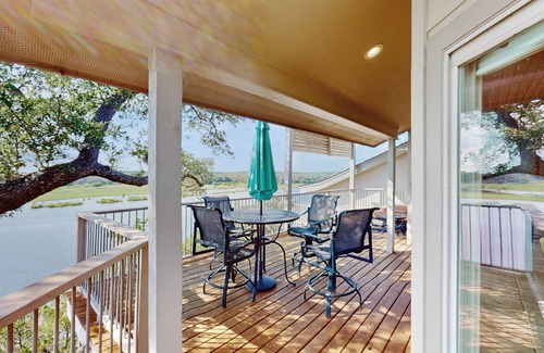 Get away from it all at this stunning lakeside retreat. Set on scenic Lake Travis, this waterfront three-bedroom townhouse in this gated community is the perfect home base for a Hill Country adventure. Unwind on the luxurious back deck while you watch the Texas sunset. The shared boat launch allows you to explore the lake with ease. Boat trailer parking is available in the street or at the boat launch.