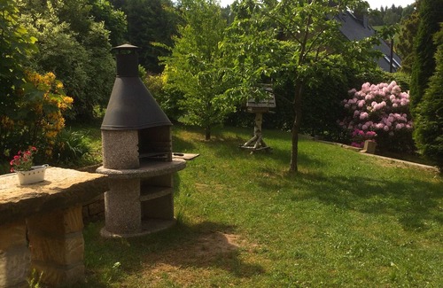 Of course, you may like to share our loving and idyllic garden. It includes a rustic gazebo with original wooden beams and a sandstone drywall and a large wooden terrace with an open fireplace. At this place you can enjoy the sun to the fullest bishin an unforgettable sunset over the mountains of the Zittau Mountains. Your children can play in nature and in the large courtyard of the villa here.