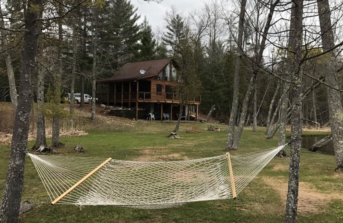 This beautiful chalet cabin sits on 11 secluded acres and the beautiful Little Manistee River. There is a covered porch with a cedar swing to sit and watch the scenic river flow. Located close to State trails for hiking and ORVs. Near the Pine River (20 Minutes) and Pere Marquette River for canoeing, kayaking or paddleboarding. The Little Manistee River is know for it's excellent trout fishing.