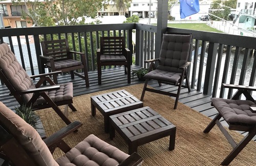 Beautiful two story waterfront vacation home ideally located in Long Key. Situated between IslaMorada an Marathon Key in the famous Florida Keys. 2 spacious bedrooms – 2 full baths and a loft that provides additional sleeping space if needed. A fully equipped kitchen, high ceilings, a wrap around terrace and a private outdoor shower add to the comfort and charm. Get ready to relax and enjoy the sunset views and tropical breezes while savoring your complimentary bottle of champagne from the top or bottom deck. Whether you prefer inshore or offshore fishing and diving you are only a 5 minute boat ride away from the Atlantic Ocean or the Gulf of Mexico . No need to pay extra to keep your boat in the water . Property has a 60ft. dock with a permanent 33ft. boat so any boat 25ft. or under can be accommodated. Bring your boat or rent one for the perfect tropical experience.