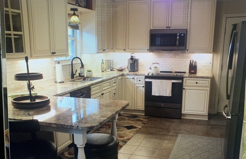 Discover the small town making big news! Springfield is located just north of Savannah. Explore local boutiques, antique shops, bakeries, lunch cafes, and event venues all within 1.5 miles of the cottage. The restored Mars Theater will take you back in time. Tybee Island, Hilton Head, and Statesboro are all within an hour drive if you choose to explore more of the south. After you settle in and feel the peaceful accommodations, relaxation sets in -From the screened front porch listening to local birds song, or cloud watching from the hammock out back. You may not want to leave! The house is equipped with comfortable beds, fresh crisp linens, a washer and dryer, an oversized cultured marble shower with awesome water pressure, along with a grill outside and every kitchen gadget you'll need. Dish television, and wifi ready. Front yard is large enough to throw a football or frisbee, back yard has ample seating with 2 outdoor dining areas, and a hammock. Marshmallow roasters are in the pantry when it's time for some stories and smores around the fire pit.