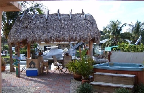 The home has large concrete dock with fish cleaning station. Tiki bar with outdoor Jacuzzi, portable gas grill and pool table. Has quick ocean access via Tavernier Creek. Amenities include: Fully equipped kitchen, microwave, dishwasher, big screen TV in living room, TV’s in Tiki and master bedroom, DVD, washer & dryer. Master bedroom has a king bed, second bedroom and third bedrooms each have queen size beds. No Smoking and No Pets permitted.