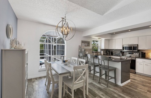 This 3 bed, 2 bath residence located in a quiet neighborhood of South Venice was newly remodeled and designer furnished with a contemporary flair. The Master Bedroom has a King Bed with a private bath with shower; the 2nd bedroom has a Queen Bed (with TV); and the 3rd bedroom has bunk beds to accommodate the whole family. Second full bath for bedrooms 2 and 3 has a tub and shower combination. The dining area features a table that seats 6 comfortably with 4 additional seats at the kitchen island. The kitchen comes completely stocked with all your culinary needs including appliances, spices, complete cookware and glassware. The house has wireless internet throughout with a 65” TV in the living room, a 45” TV in the 2nd bedroom and a 40" TV in the lanai.. The spacious lanai has a fire pit, 2 fans, a gas grill for your family dinners and a table with 4 chairs. All of the flooring in the house (except the master bathroom) has new luxury vinyl flooring installed in June of 2022.