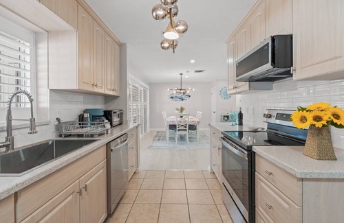 Your Sarasota getaway starts here! Coral Breeze is a stylishly remodeled 3BR/2BA home in the quiet Gulf Gate neighborhood, just a short drive to world-famous Siesta Key Beach. Dogs are welcome with approval, making it easy to bring your furry friend along for the adventure.
