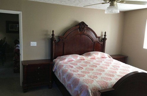 Quiet and relaxing country setting. All one level with 1000 sqft of relaxation. (1) master bedroom with king size bed, (1) full size bed located in living room area, galley kitchen open to living room, separate dining room and 1 bathroom with walk-in shower. 9 miles from Greenwood Mall in Bowling Green KY. Just south of Beech Bend Park Raceway. 15 private acres and plenty of parking for your car, trailer or RV. Located just off Scottsville Road HWY 231. Great furnished housing for your business travel or vacation. Longer stays can be negotiated. Garage space for a vehicle is not included.