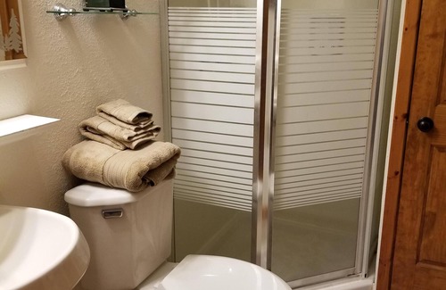 Your private bathroom includes a shower, medicine cabinet, pedestal sink, toilet, linen closet and all bath, kitchen and bedroom linens are furnished, as are soaps, conditioner, shower gel, toilet paper and facial tissues.