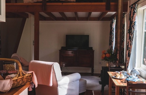 The cottage is a private, self-contained hideaway set on two acres beside the creek and separated from the main house by a grassy field, hill and tree cover. The cottage features a highly functional kitchen with a four burner stove, microwave, tea and coffee provisions including a Nespresso machine, as well as a small kitchen table and chairs. The cottage has been restored to reflect the local flora and fauna. Guests will enjoy a welcome breakfast basket delivery with fresh eggs from the free range chickens on site, a range of preserves, granola, fresh fruit and yoghurt, and a choice of bread. Afternoon arrivals will be welcomed with homemade treats.. The mezzanine bedroom with railed galley stairs is a cosy and comfortable sleeping space, while the sitting area beneath is the perfect place to relax and unwind with a book or one of the movies or board games provided. The front deck is the perfect place to enjoy the morning sun and the beautiful rainforest surrounds with the sound of the Minnamurra river and the birdlife, There is an outdoor setting and Weber barbeque at guests' disposal. The cottage has effective heating and cooling options for cool and warm days. Please note the wood burning stove is not up to current safety standards therefore not usable, but the cottage is lovely and warm with an effective electric heater and electric blankets for winter . It has a lovely cosy feel.