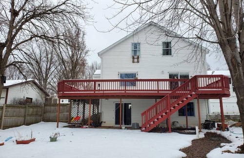 Lovely house with tons of space. Located on Brice Prairie, this house sits on a back stream of the mighty Mississippi/lake Onalaska. Accessible by flat bottom boat, kayak or similar. Not a great swimming spot with being often a bit weedy. Great ice fishing just down a bit and a large fenced in back yard. House has two kitchens, formal dining, large deck, rec area with kids items.