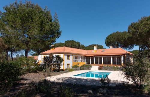 Spacious (400 m2 / 4300 sq ft) and comfortable house, surrounded by one hectare (10000 m2 / 108000 sq ft) of private land, with plenty of large native trees and located in a gated condominium (Herdade de Montalvo).