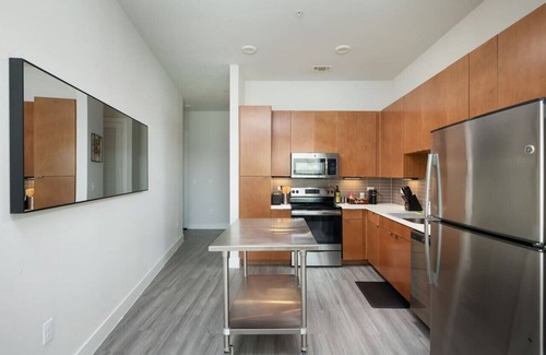 The San Antonio Retreat offers a well-appointed space with all the comforts of home. The fully equipped kitchen with top-of-the-line LG appliances allows you to prepare meals with ease. After a day of exploring, unwind in the living area featuring a 65-inch HDTV with access to Apple TV, Disney+, HBO Max, Hulu, and Netflix. A dedicated workspace with an ergonomic chair is also available for those who need to stay connected.
