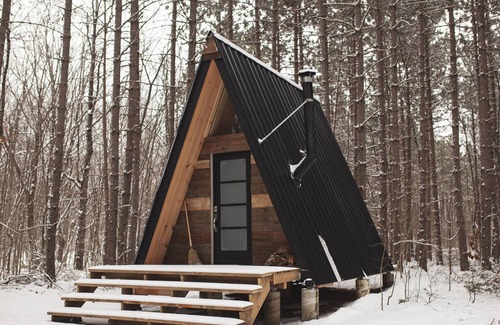 Looking for the ultimate escape from the city? This peaceful, off grid cabin, nestled in the middle of a 25 acre forest is the perfect winter escape.