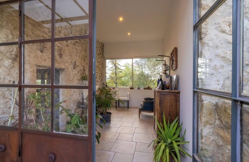 In this beautifully decorated stone house, you will find 2 bedrooms with 2 bathrooms with walk-in showers. One of the bedrooms is equipped with a 160cmx200cm bed, the other, with an attached bathroom, is equipped with a 140cmx190cm bed. The large living room, very bright, opens onto a fully equipped kitchen. You can enjoy your meals while enjoying the exceptional view of the Cévennes. The house is very well insulated and therefore very cool during the summer. But there is air conditioning if needed, powered by solar panels. The entrance has been transformed into a winter garden with a reading corner where you can take off your shoes comfortably.