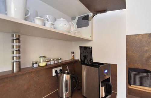 Nestled in the heart of the southern Thuringian Forest, this 2-bedroom apartment offers a serene retreat for small families or groups of friends. The living and dining area features a smart TV, stereo system, and cozy seating, while the open kitchen is fully equipped for home-cooked meals. A tastefully landscaped shared garden and terrace provide spaces to relax, sunbathe, or enjoy a barbecue (on request), surrounded by the forest’s tranquility.