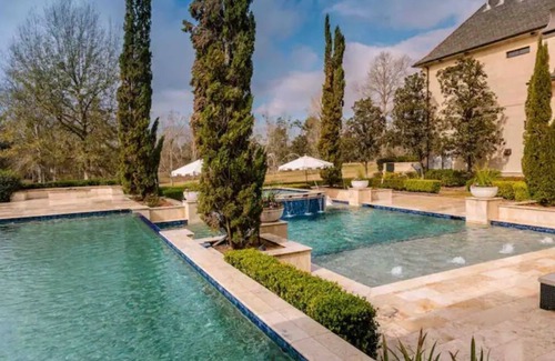 *This listing is strictly for 16 guests and under during the day & night. Events may be bundled with overnight stays & booked separately through our event coordinator. No elevator in home, bedrooms are on second floor, there are 5 steps to enter first floor*. Magnificent Country Estate poised on an impeccable 25 acre setting with a balance of manicured gardens, lush lawns and lake. Unparalleled in architectural design, this French Chateau-style home offers every amenity one could desire and affords comfort for family gatherings or elegant soirées. Custom top to bottom with formal and informal spaces, professional kitchens both inside and out, media room, game room, 5 bedroom-6.5 baths, and bi-level pool with hot tub.