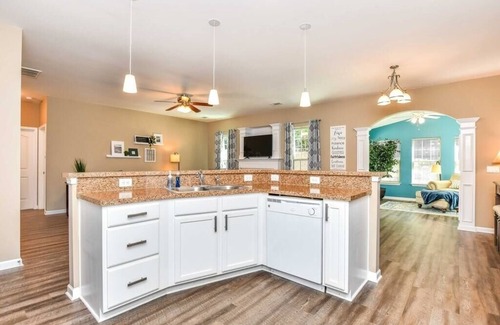 3000 sq ft family-friendly home perfect for get-togethers, family reunions, corporate bookings, and large groups. Sleeps 15 comfortably with 6 bedrooms, 11 beds w/king on the first floor. Fully stocked kitchen and beautiful patio for extended gathering space. Local city park with kids playground directly behind the home separated by a wooded path. Centrally located at just 10 mins from GSP Airport, 20 min from downtown Greenville, and close to BMW, Michelin, Greer, Spartanburg, and Shopping.