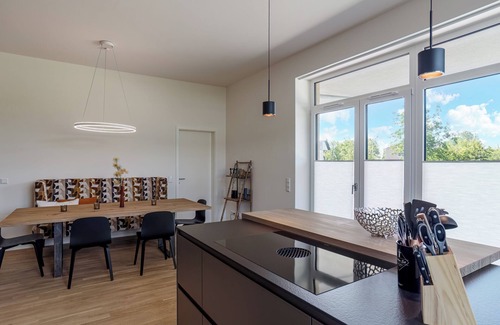 The fully equipped kitchen leaves nothing to be desired, complete with modern appliances such as a spacious refrigerator, an induction cooktop, an oven, a microwave, a dishwasher, and all the necessary kitchen utensils. Whether you're preparing a quick breakfast or a gourmet dinner, you'll find everything you need to cater to your culinary desires.