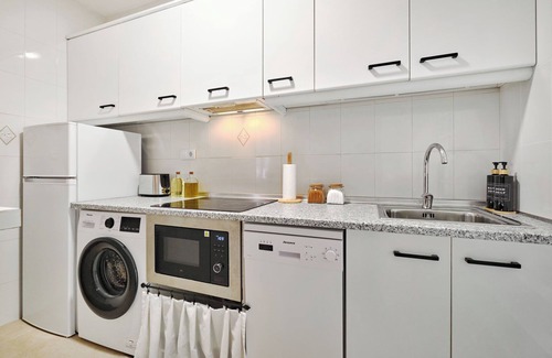 The perfect retreat in Torrevieja, located in the peaceful area of Los Altos! This home is ideal for those seeking a blend of comfort, style, and a quiet space to work online. The cozy double bedroom is designed for 2 guests, with super-fast Wi-Fi and air conditioning, so you'll always stay connected and comfortable. The modern, fully equipped kitchen allows you to prepare your favorite dishes, while the dedicated workspace is ready to be your creative corner for working in complete tranquility.