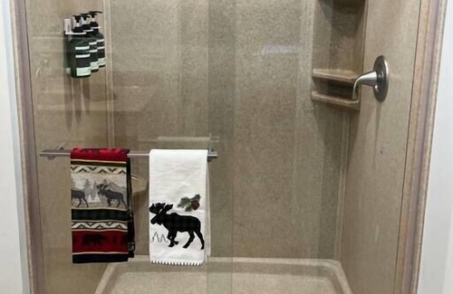 The first floor of the house is outfitted with multiple gathering areas and two comfortable bedrooms. The large kitchen is perfect for creating wonderful meals for your group and is attached to a dining room. A peninsula with stools that divides the kitchen and the dinning room serves as a great place for people to hang out and snack while others are cooking. The kitchen is fully stocked with pots, pans, utensils, silverware and anything else you might need to create or enjoy a meal with your guests. The kitchen has all of the appliances you need including a large refrigerator, a dishwasher, a range, a toaster, and a microwave for your use. Around the corner from the kitchen is a comfortable living room equipped with big leather couches, a smart TV, and plenty of reading material. The two bedrooms on the lower level are sheltered from the gathering area and get plenty of natural light. They are close to the downstairs full bathroom that has a bathtub (great for bath time if traveling with kids!) Both down stairs bedrooms have queen beds.