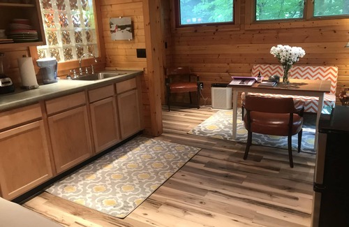 Guests have access to a grill, fire pit and hammock. WiFi is available for your devices. CD player and record player/records are provided. No cable or television. Cell phone service is available if occasionally spotty. There is a security camera on our main residence. It does record but is not monitored 24/7. You will see the camera if you walk up to our main residence.