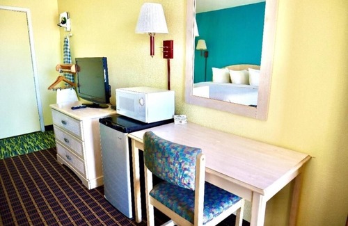 ✦ Your room is 150 sq. ft, equipped with complimentary toiletries, standard quality 32-inch TV, available with Standard cable.