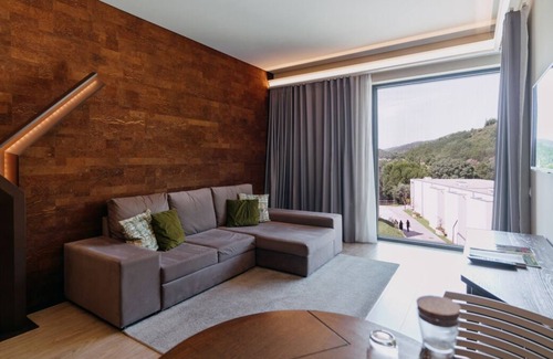 Escape the noise and embrace the peace! Welcome to our apartment in a sleek and stylish resort located on the banks of the Alva River in Oliveira do Hospital, Portugal. Within our expansive property, you'll discover a range of amenities, including a spa and multiple pools for your relaxation. Whether you're looking to create lasting vacation memories or enjoy a weekend getaway, our modern room, exceptional gastronomy and wellness offerings make this the perfect destination.