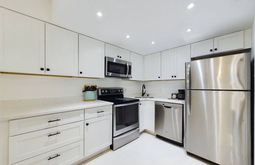 Experience luxury and comfort at this newly renovated first-floor condo at Royal Mansions, offering 2 bedrooms, 1 bathroom, Murphy bed, and a private patio to unwind and enjoy the laid-back atmosphere. Rest peacefully on a king-size bed, a full-size bed, and a convenient murphy bed equipped with luxury sheets.