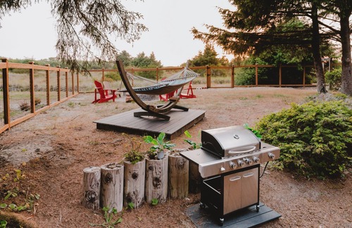 We are family and dog friendly with a fully fenced yard. It takes 7- 8 minutes walking on a well maintained trail to have your toes in the Pacific Ocean. Be lulled to sleep by the sound of the roaring ocean waves.