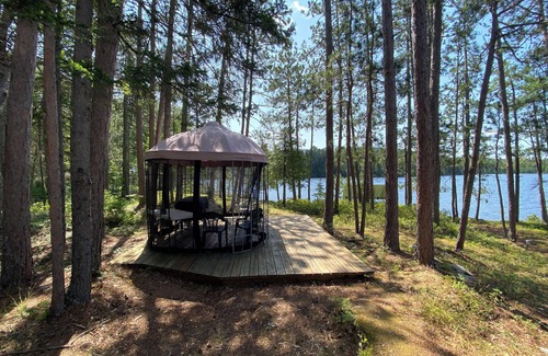 There is an eagle that lives on the back side of the island. It is common to see him flying overhead. You will hear the loons talking to each other at night. Keep a look out for moose on the main land.