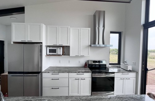 This brand new house is the perfect place to get away from everything and enjoy the beauty of the flint hills prairie. Sunsets, starry nights, and the scenic view can be enjoyed on the balcony or from the comfort of the couch with wall to wall, floor to ceiling windows in the living room.