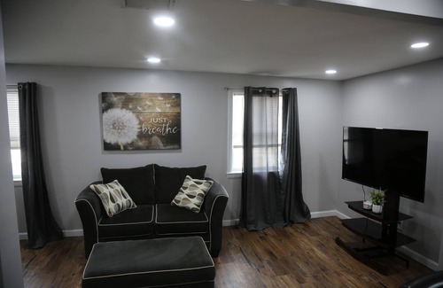 This 3 bedroom newly renovated unit is a perfect stay. Centrally located 2 minutes from downtown, few minutes from restaurants, parks & highway. Master bedroom consist of a king size purple memory foam mattress with an electrical adjustable base & a study/work desk. Great Kids room with 3 bunk bed mattresses with a slide.