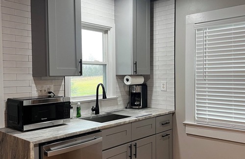 -Kitchen - Fully stocked kitchen with all new and modern appliances, touch-less faucet, granite countertops with a countertop bar and stools for 6. Dine-in kitchen with a counter height table with seating for 4. Plenty of pots, pans and bakeware if you want to prepare meals. Plenty of Fiestaware dishes. For your convenience, there are spices, spray oil, and sugar as well as ziploc, aluminum and plastic wrap. Instapot, slow cooker, toaster, and coffee maker with filters and Greenberry ground coffee.