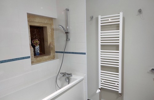 In a quiet village with a rich architectural heritage, adjoining gîte, located on the ground floor and first floor of the former priory, fully restored, with a private unenclosed terrace (garden furniture and barbecue available) and direct access to the park with children's playground. On the ground floor, it includes 1 living room with equipped kitchen, 1 double bedroom (90cm trundle bed possible) and a shower room/wc. On the first floor, 2 twin bedrooms are at your disposal as well as a bathroom/wc. The price includes: electricity, heating and beds made on arrival. Possibility of renting for 8 people with supplement.
