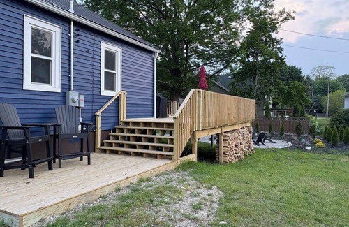 Enjoy lake views from the oversized deck, cozy evenings around the firepit, and easy access to everything Port Austin has to offer. Whether you’re here for the farmers market, Turnip Rock, or a relaxing family escape, this home is designed for memorable stays. 3 Bedrooms, 5 Beds – Great for families and groups. 2 Full Bathrooms – No waiting in line. Lake Views – Watch the sunset over Lake Huron. Large Deck & Firepit – Perfect for gathering and unwinding. Walk to Everything – Just steps from restaurants, shops, the pier, and more. Why You'll Love It • Unbeatable Location –One block to downtown shops, restaurants, and the famous farmer's market • 3-Minute Walk to Beach & Marina – Access Veterans Waterfront Park with sandy shores, a playground, clean restrooms, and a scenic pier • Family-Friendly Setup – Spacious and thoughtfully designed for group stays • Stylish Renovations – Fresh interiors and modern upgrades inside and out • Relaxed Vibe – A cozy home base after a day of exploring • Outdoor Fun – Kayak, bike, hike, or explore the waterfront, Local Favorites Just Steps Away: Blue Moon Ice Cream Kayak launches and Turnip Rock tours Kooky Golf & Gallup Park Live music and outdoor dining at Pak’s Backyard Farmers Market (Saturdays, in season) Whether you're sipping morning coffee on the deck or catching a cotton-candy sunset at the beach, this is the kind of place where memories are made. Come stay where small-town charm meets Lake Huron beauty — we can’t wait to welcome you!