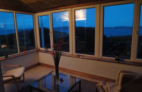The Irish stone house has a new interior, is modernly furnished and is located quietly on a 6000 sq. m nature property. From the kitchen, living room, winter garden and patio, you will have a view of the Bantry Bay and of the open Atlantic. Sea, swimming bay and cliffs are only a few minutes walk away.