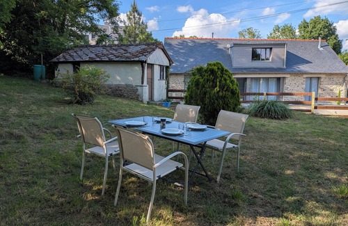 Renovated farmhouse with sauna, chalet atmosphere, in a quiet wooded setting is located in La Bosse-de-Bretagne. Renovated farmhouse with sauna, chalet atmosphere, in a quiet wooded setting provides accommodation, featuring Fireplace/Heating, Internet, Kitchen, among other amenities. This House features Fireplace/Heating, Internet, Kitchen, to make your stay a comfortable one.
