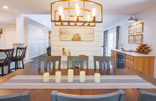 - Spacious dining area seats 8 and 4 additional stools at the kitchen counter.
