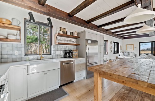 The barn has been converted into a play space for both adults and children alike with a ping pong table and shuffleboard downstairs, and additional sleep space in the form of a long, built-in daybed and a playroom full of activities and games for the kids upstairs. This connects to the old part of the house via a mudroom, where you will find life jackets for everyone in the family and beach gear should water activities be on the agenda.