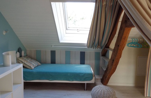 Very nice renovated house, large living room 45m ² with kitchen, 3 bedrooms & 2 bathrooms arranged in 2 units that can be privatized to preserve the independence of each. Terrace, barbecue, garden of 2500m ², calm exceptional. The house is ideal for 2 couples because it is arranged in two independent units, each double room having its bathroom and WC s. Children will appreciate the double room under the roof which has access to the bathroom on the 2nd floor without stairs, as well as the garden with its guinea pigs in freedom. The living room can also accommodate 2 additional people (sofa bed & separate toilet). Each floor has a toilet.