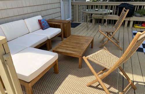 Bright and airy, renovated getaway with furnished deck and large backyard just minutes from Pier Village beach and boardwalk, Seven Presidents playground and beach, amazing restaurants and supermarkets!