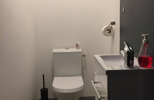 Welcome to this recently renovated character house. Inside, you will have a beautiful kitchen (induction hob, oven, microwave, dishwasher, coffee maker, grill-bread ....) open on a living-room full of charm with its stones and exposed beams and its ornamental fireplace, a separate toilet and a small pantry (washing machine, dryer, iron and ironing board ...).