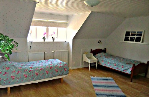 Erik's House has year round standard and is very charming renovated in 2010 and 2013. The building is old and new mixed. The beds and all linens are new, while the wooden sofa in the kitchen belonged to the farm for over 100 years. The kitchen is of high standard with dishwasher, microwave, coffee maker, stove with four burners and oven. Of course, there is fridge, freezer, washing machine and dryer. The living room has a comfortable sofa, armchair, flat screen TV and children's games to enjoy in the evening or on rainy days. A large storage room is built together with Erik's house. The storage used for winter storage. You live for yourself throughout Eric's house is on 140m2. You have a private garden of 700 m2 with fruit trees, berry bushes, garden furniture and barbecue. Just outside Erik's House are all rabbits and chickens in their cages summer. Erik's house is child friendly with gates on the stairs, highchair and toys.