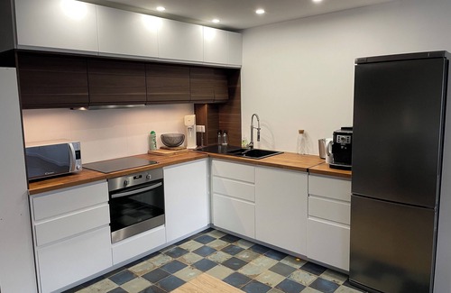 A BBQ grill and a fireplace are featured at this 2-bedroom, 1-bathroom rental. Enjoy the WiFi and TV. Bathroom amenities include a hair dryer, towels, and toilet paper. The kitchen is equipped with an oven, a stovetop, and a refrigerator, as well as a coffee maker, an electric kettle, and a microwave. And you won't have to pack extra clothes, because you'll have a washer and dryer, too. Other amenities include bed sheets, an ironing board, and heating.