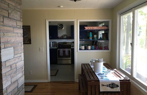 Enjoy this 2 Bedroom plus Bunk Room cottage. Hardwood and tile, Smart TV in each bedroom, 55"TV in the living area, all new appliances and a washer and dryer. A large deck and steps that lead to the beach and dock are all new. Plenty of parking is available if you have a boat trailer. This cottage is located in a calm portion of the bay so it's great for swimming and boating. Three Kayaks and an aluminum boat for you to use!