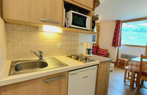 "Renovated Studio-Cabin with South-Facing Balcony, Ski-In/Ski-Out, Close to Shops" is located in Plagne Villages. "Renovated Studio-Cabin with South-Facing Balcony, Ski-In/Ski-Out, Close to Shops" provides accommodation, featuring Wheelchair Accessible, Accessibility, Security/Safety, among other amenities. This Apartment features Wheelchair Accessible, Accessibility, Security/Safety, to make your stay a comfortable one.