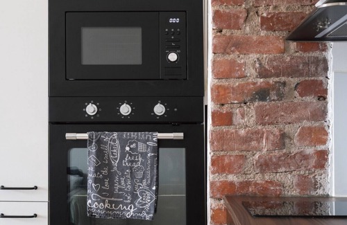 Our cozy, bright apartment features large windows that bathe the space in natural light, offering panoramic views of the city and surrounding landscapes. The open-plan living area is tastefully furnished, with a chic and minimalistic design that exudes modern luxury. Enjoy a relaxing evening on the comfortable sofa or cook up a meal in the fully equipped kitchen, which includes all the essentials: a stove, oven, microwave, dishwasher, and all necessary cookware.