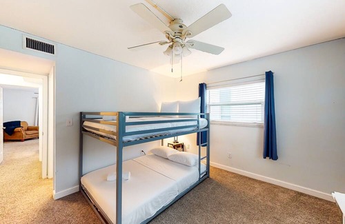 Upon your return, you can unwind in central air conditioning, set up a board game with your loved ones, and stream a favorite movie on the smart TV in the background. Each of the uncluttered bedrooms features a desk workspace, so you can log onto the high-speed WiFi and catch up on email.