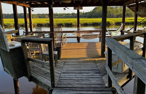 Historic log cabin on deep water just outside of Charleston, SC. Enjoy your stay in this one bedroom log cabin on the Toogoodoo River where peace, quiet and views abound. It has a full kitchen, living room, dining area and great front porch! We are located just down the road from Edisto Beach and Kiawah- with restaurants, hiking trails, and Botany Bay Beach ! Bring the kayaks, get ready for some amazing sunsets and dolphins swimming by!